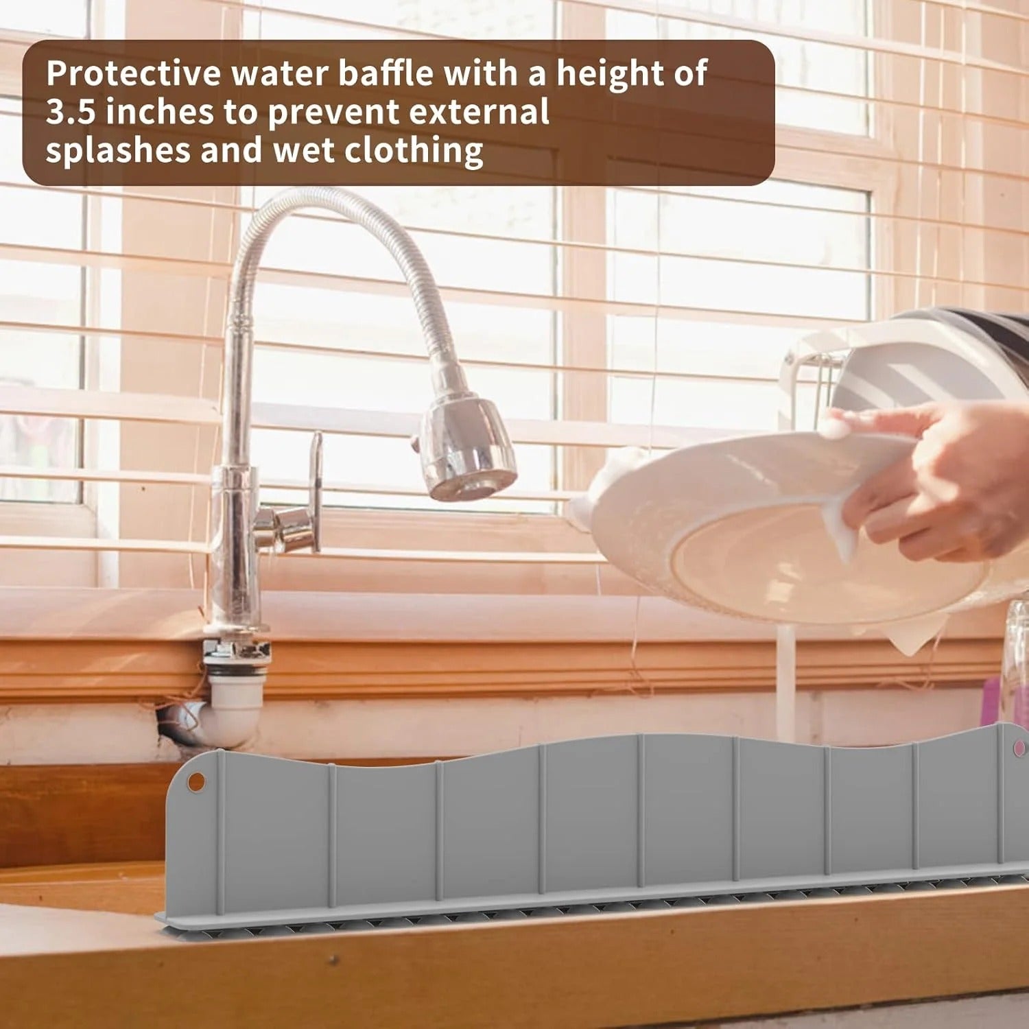 💦 Prevents water splashing  — Designed to block water from spilling onto the countertop during sink use.